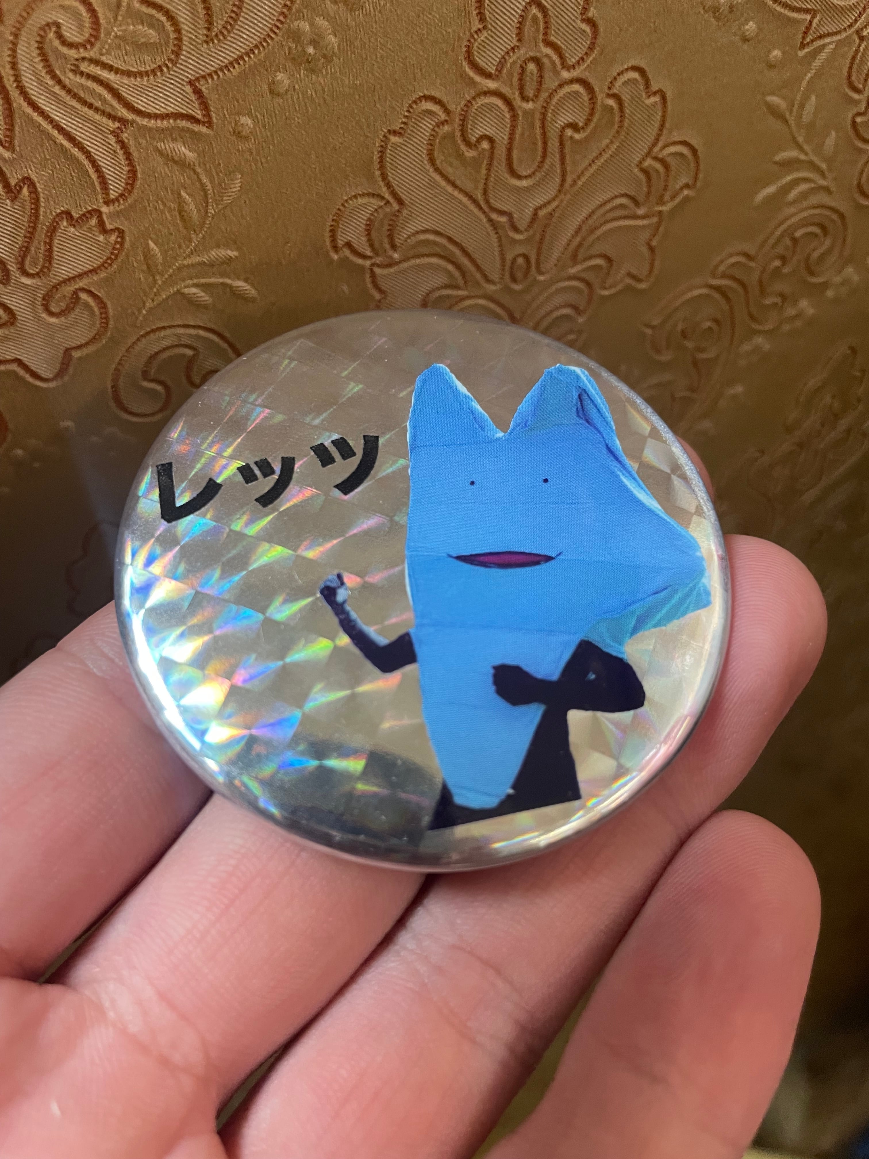 長さが5センチのデカ目の缶バッチです